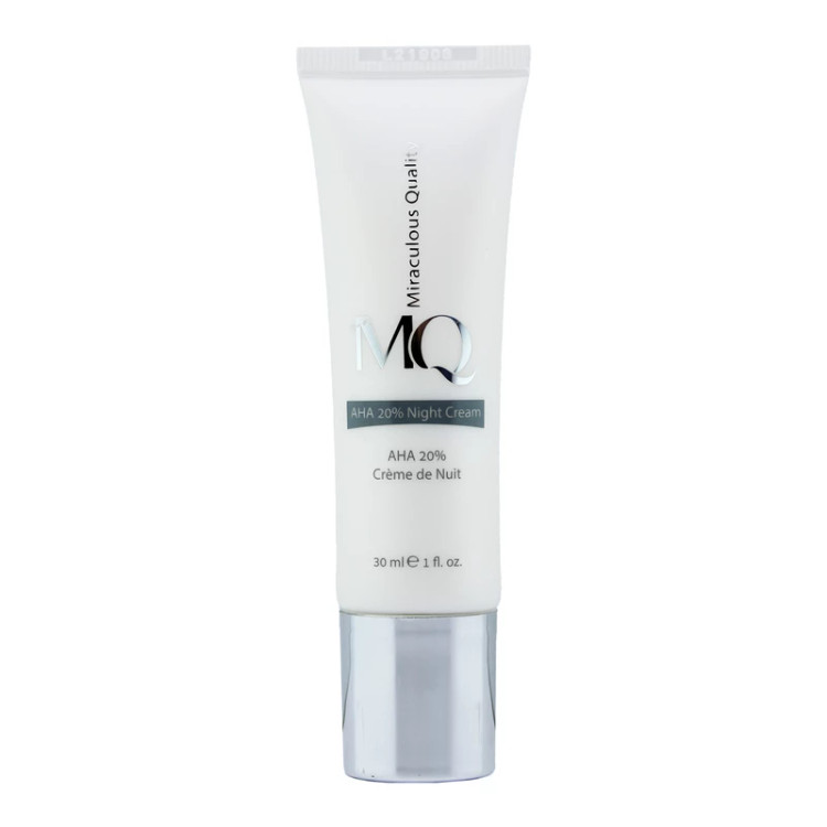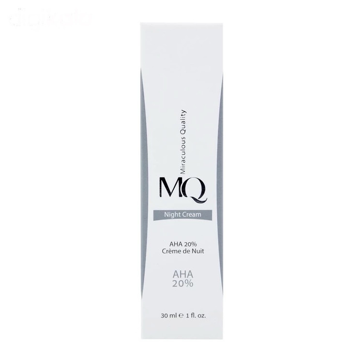 محصولات MQ ساخته شده از مواد با کیفیت می باشد. این محصولات در یکی از معتبرترین لابراتوارهای فرانسه و زیر نظر اساتید فن در صنعت مراقبت از پوست و مو فرموله شده است. این کمپانی کرم شب لايه بردار (AHA 20% NIGHT CREAM)روانه بازار کرده است که یک ضد چروک همراه با خاصیت جوانسازی پوست است. این کرم که یک لایه بردار قوی است ضخامت لایه شاخی پوست را کنترل می کند و عمق چروک ها را تا 55% کاهش می دهد. از دیگر خواص این کرم افزایش شفافیت و روشن شدن رنگ پوست است همچنین چون یک محرک ساخت کلاژن است و از افتادگی پوست پیشگیری خواهد کرد. این کرم حاوی ترکیبات مغذی و رطوبت رسان قوی است با تنظیم PH پوست ، نرمی و لطافت را به پوست باز می گرداند. جهت استفاده شب ها مقدار کمی از کرم را بر روی پوست تمیز بمالید.