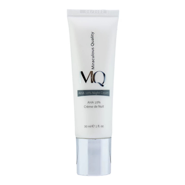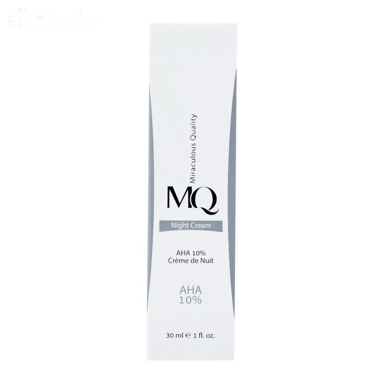 محصولات MQ ساخته شده از مواد با کیفیت می باشد. این محصولات در یکی از معتبرترین لابراتوارهای فرانسه و زیر نظر اساتید فن در صنعت مراقبت از پوست و مو فرموله شده است. این کمپانی کرم شب لایه بردار ده درصد ( AHA 10% NIGJHT CREAM) روانه بازار کرده است که یک ضد چروک همراه با خاصیت جوانسازی پوست است. این کرم که یک لایه بردار است قادر به از بین بردن سلول های سطحی مرده پوست است همچنین منجر به کاهش چشمگیر چروک های صورت و گردن، ناشی از افزایش سن خواهد شد. از دیگر خواص این کرم افزایش شفافیت و روشن شدن رنگ پوست است همچنین چون یک محرک ساخت کلاژن است و از افتادگی پوست پیشگیری خواهد کرد. این کرم حاوی ترکیبات مغذی و رطوبت رسان قوی است با تنظیم PH پوست ، نرمی و لطافت را به پوست باز می گرداند. جهت استفاده شب ها مقدار کمی از کرم را بر روی پوست تمیز بمالید.