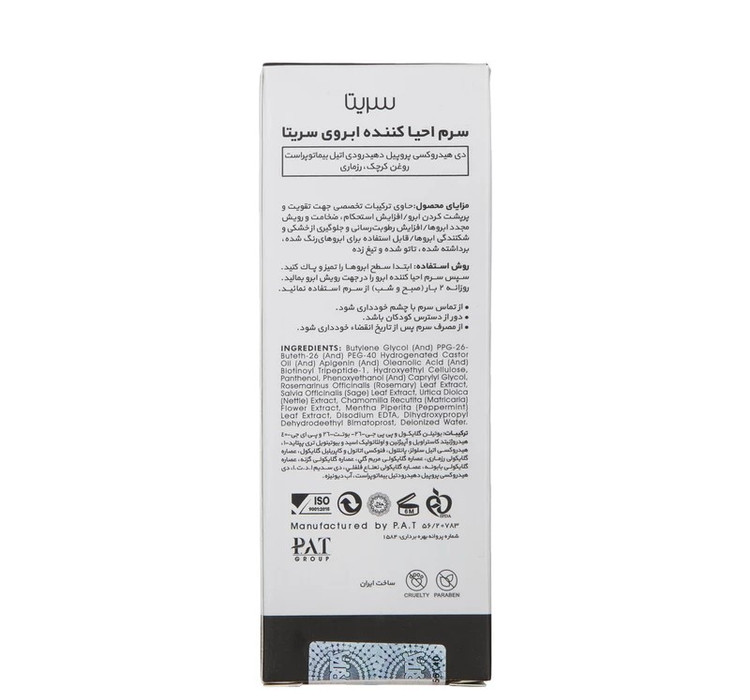 سرم احیا کننده ابرو سریتا علاوه بر کمک به رنگدانه سازی، در افزایش استحکام ابروها موثر است.