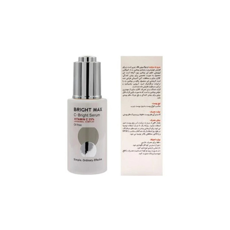 سرم ویتامین سی 25 درصد لیپوزومال برایت مکس یک سرم ویتامین سی ایرانی محصول شرکت کیا کام فارمد است.