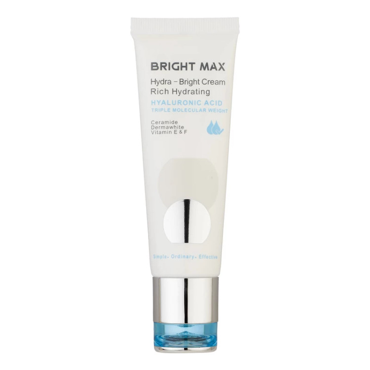 کرم آبرسان ریچ هیدرا-برایت برایت مکسبرای پوست خشک و نرمال به جهت وجود هیالورونیک اسید با وزن مولکولی سه گانه باعث آبرسانی سریع پوست در لایه سطحی و عمقی میشود. علاوه بر این، استفاده از پنتنول نیز خاصیت آبرسانی این کرم را تقویت میکند و مانع از تبخیر آب لایه های پوستی میگردد.