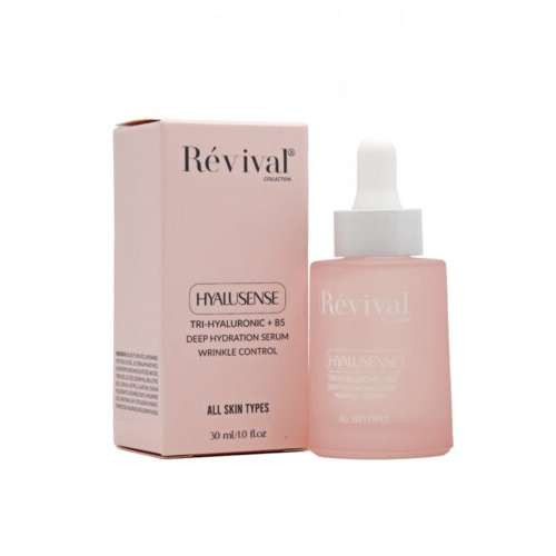 سرم آبرسان و روشن کننده رویوال 30 میلی لیتر Revival Hyslusense Tri- Hyaluronic + B5 Serum 30ml، حاوی تری اسید هیالورونیک، ساکران، پروویتامین B5، نیاسینامید، فاکتورهای مرطوبکنندهی طبیعی و آلانتوئین است که پوست صورت و گردن را به طور عمیقی آبرسانی میکند و دوام آن تا ۴۸ ساعت حفظ میشود.