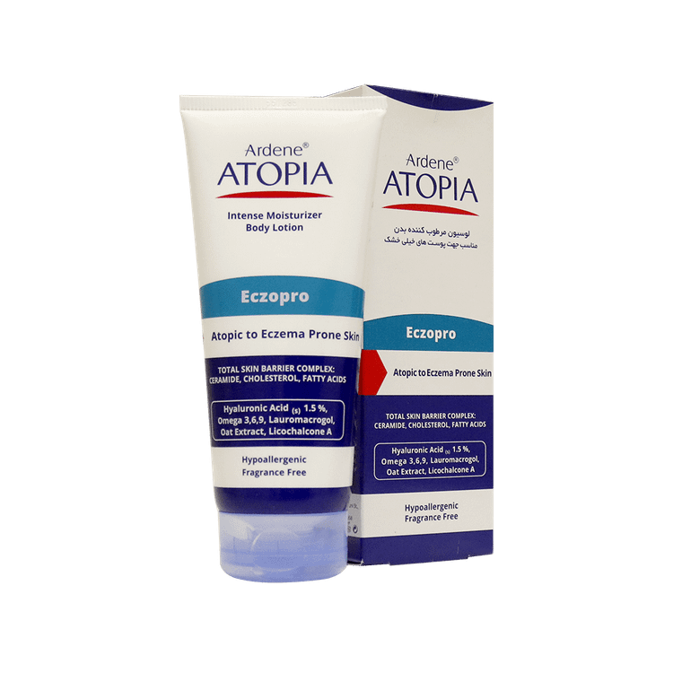 لوسیون بدن آتوپیا آردن توسط شرکت پارس حیان با فرمولاسیون قوی مرطوب کننده و آبرسان و مواد گیاهی تولید و جهت مصرف روی پوست های بسیار خشک، اگزمایی و آتوپیک عرضه گردیده است. این محصول علاوه بر رفع خشکی و علائم آن، در التیام و ترمیم پوست موثر است و مغذی و محافظت کننده نیز می باشد. لوسیون بدن اتوپیا آردن به سرعت جذب پوست شده و برای کودکان بالای 3 سال و بزرگسالان قابل استفاده است.