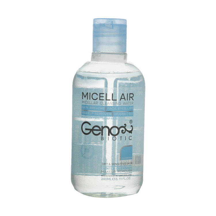 محلول پاک کننده آرایش مناسب پوست خشک و حساس ژنوبایوتیک هرگونه آلودگی و مواد آرایشی را از پوست میزداید. این محصول با استفاده از فناوری نوین میسل از خشک شدن پوست نیز جلوگیری مینماید. به علاوه عدم به جا ماندن ترکیبات میسلار واتر پوست خشک و حساس ژنوبایوتیک پس از مصرف، حفظ تنفس پوستی و عدم مسدود شدن منافذ پوست را به دنبال دارد. استفاده از این پاک کننده به علت فرمولاسیون منحصر به فرد خود، برای پوست حساس دور چشم و لب نیز مناسب است. همچنین مصرف آن به افزایش نرمی و رطوبت رسانی به پوست کمک میکند. یکی از مهمترین ویژگیهای محلول پاک کننده آرایش میسلار ژنوبایوتیک فاقد هرگونه مواد صابونی، پارابن، روغن و الکل بودن آن است. این ویژگی موجب شده تا خرید میسلار واتر و استفاده روزانه از این محصول به پوست آسیبی نرساند و التهابات پوستی را نیز از بین ببرد.