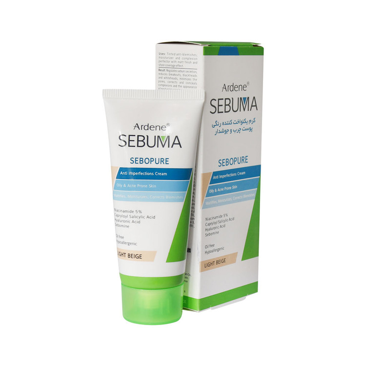 کرم یکنواخت کننده رنگی پوست چرب سبوما آردن با عملکرد چندگانه ضد جوش، مرطوب کنندگی رنگی، مات کنندگی سطح پوست و پوشانندگی عیوب پوستی و ناهمواریها یک محصول معجزهآسا است. این کرم بر پایه فرمولاسیون سیلیکونی و پوشش کرم پودری تولید و عرضه شده است. کرم یکنواخت کننده رنگی Sebuma فاقد چربی و غیر کومدون زا بوده و علاوه بر کنترل ترشح چربی پوست، موجب برطرف نمودن براقیت سطح پوست و چربی اضافی آن میشود. همچنین کاهش اثر علت های بروز جوش و آکنه و رفع کومدونهای سر سیاه و سر سفید و پوشاندن لکها از دیگر مزیتهای استفاده از این محصول است.