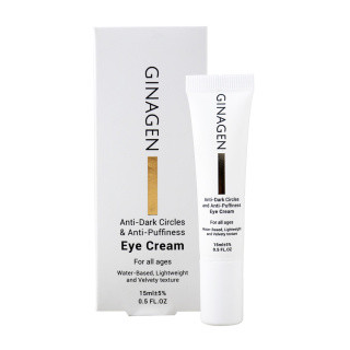 کرم دور چشم ژیناژن ضد تیرگی دارای بافت سبک و ساختاری مخملی بر پایه آب است که با هدف رفع تیرگی دور چشم و پف، قابل مصرف برای انواع پوست در سنین مختلف در بسته بندی تیوپ به حجم 15 میلی لیتر تولید می شود.