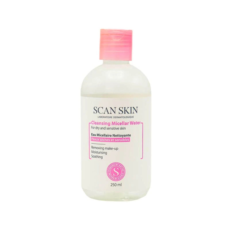 محلول پاک کننده میسلار واتر پوست خشک اسکن اسکین Scan Skin Cleansing Micellar Water for Dry Skin پاک کننده مناسب پوست خشک و حساس از محصولات اسکن اسکین است. محلول میسلار واتر پوست خشک اسکن اسکین، یک پاک کننده مناسب برای پاک کردن آرایش و پاک کردن پوست از آلودگی ها است.